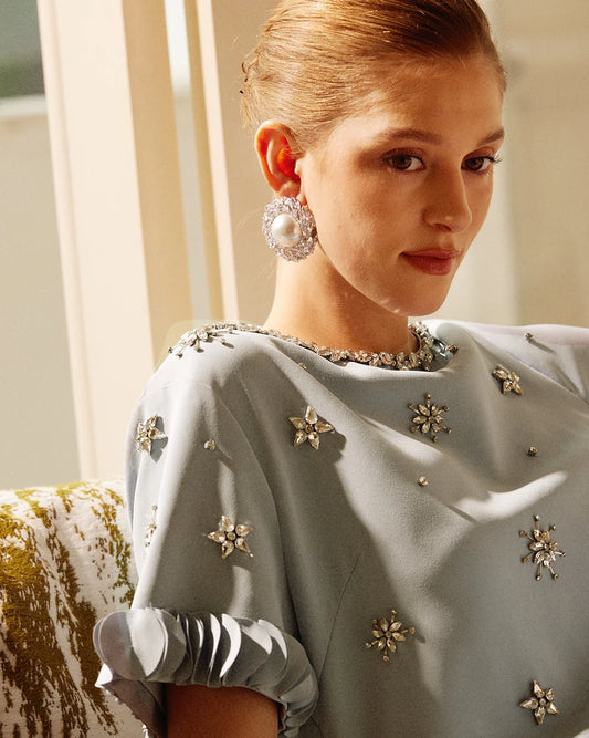 Göz kamaştırıcı payetli tüy manşetli elbise