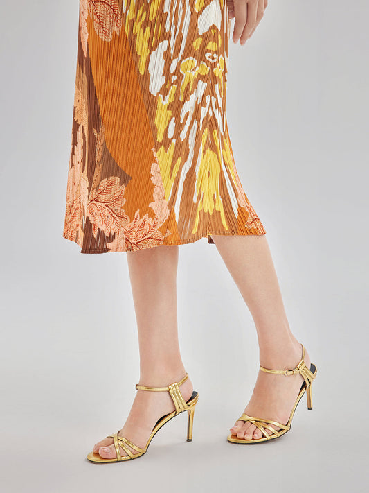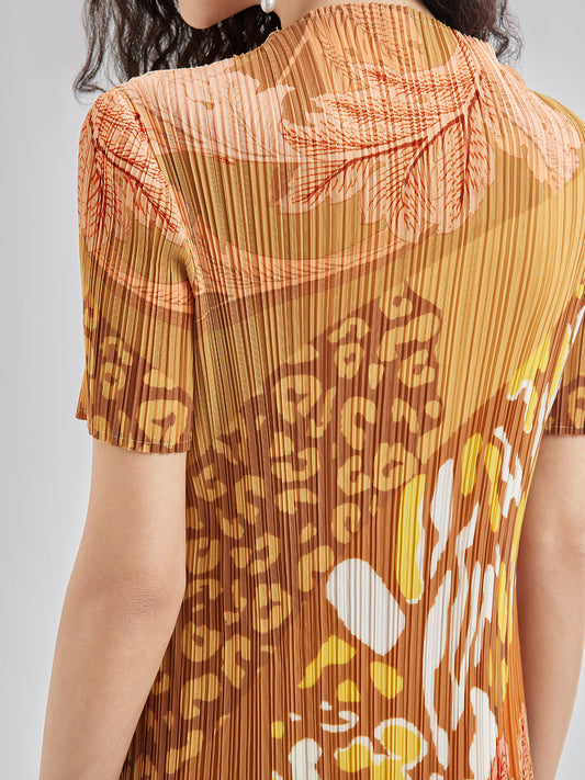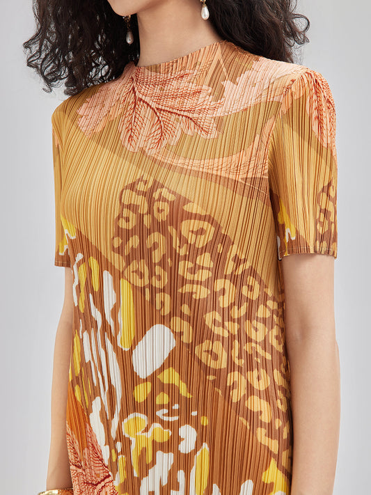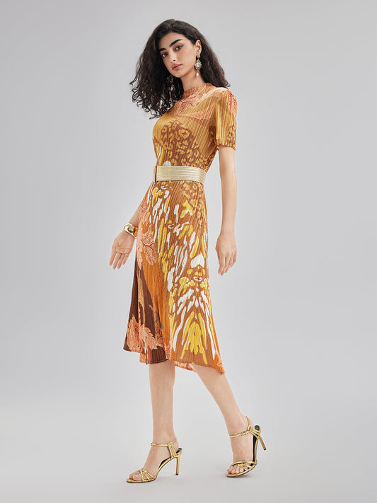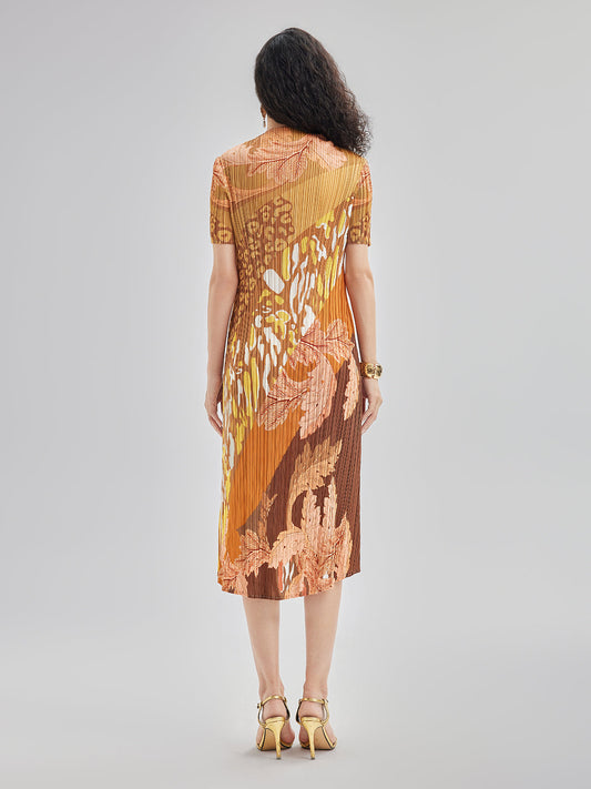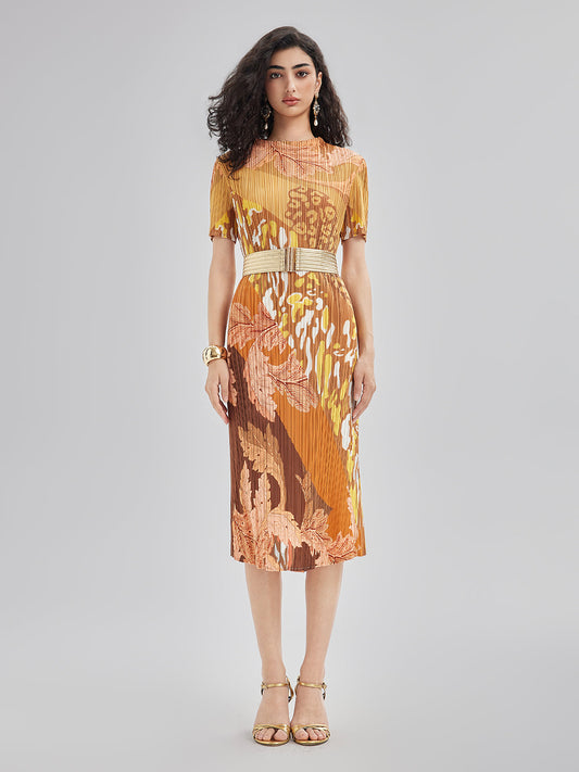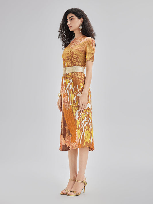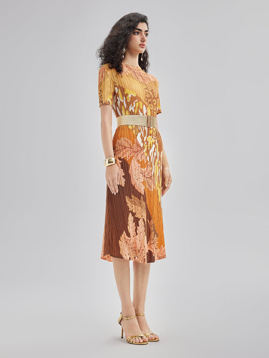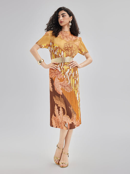 Sanatsal Çiçek Desenli Pileli Elbise