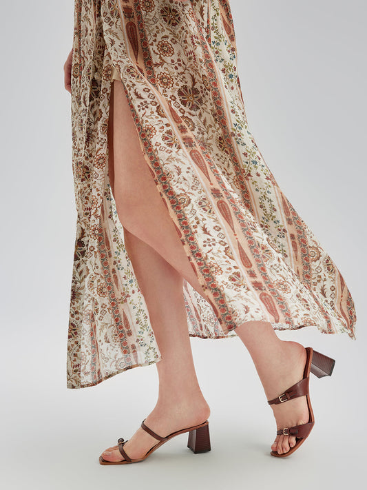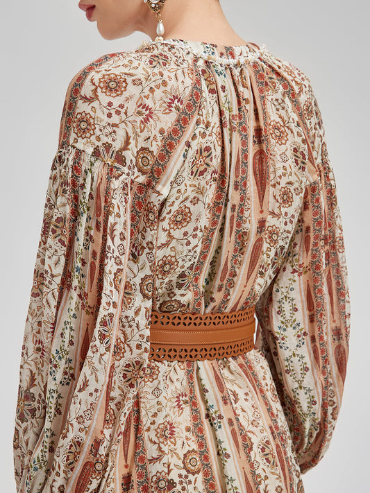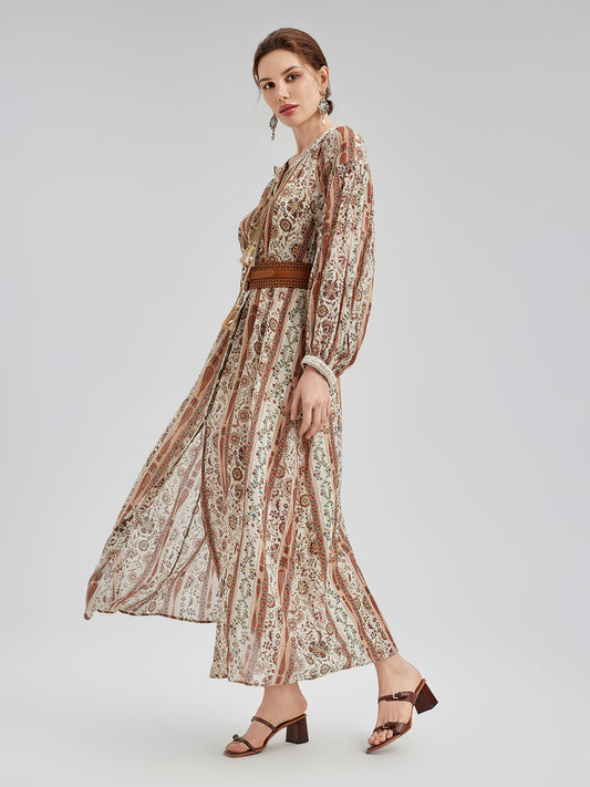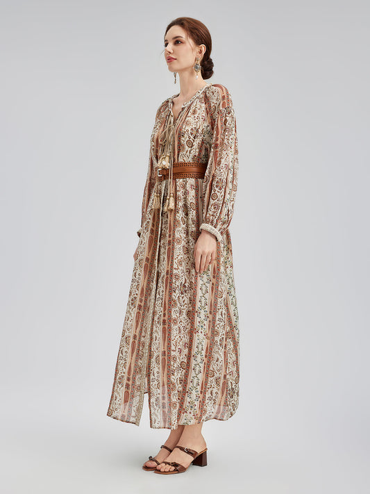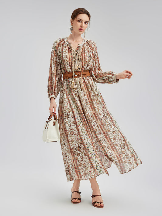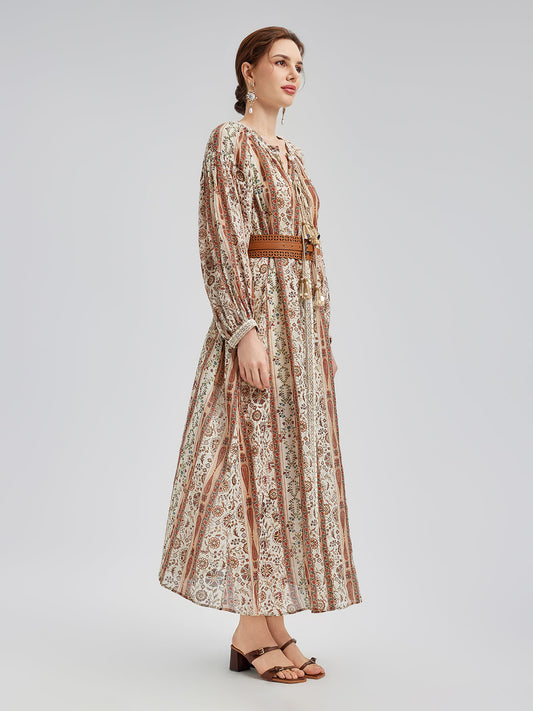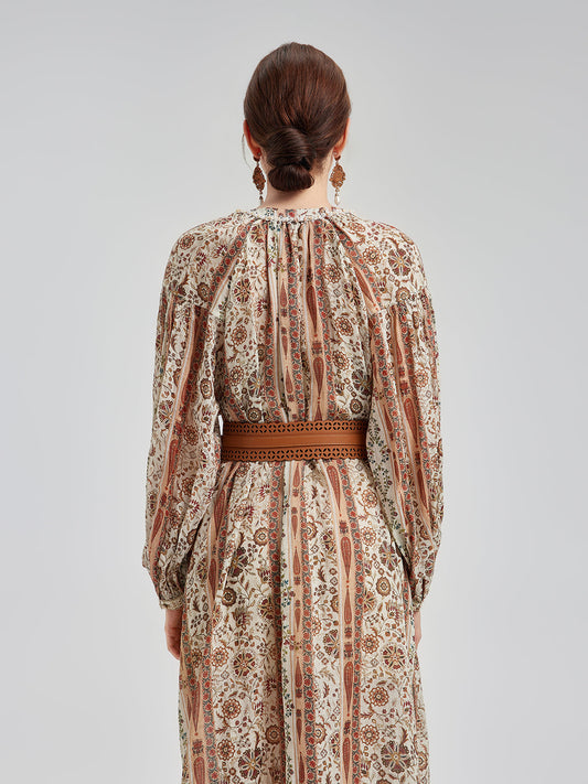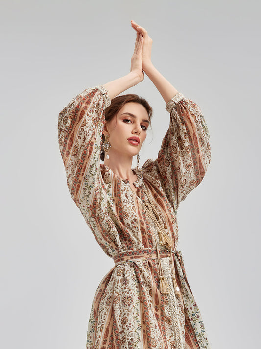 Nefes Alabilir Etnik Desenli Ramie Elbise