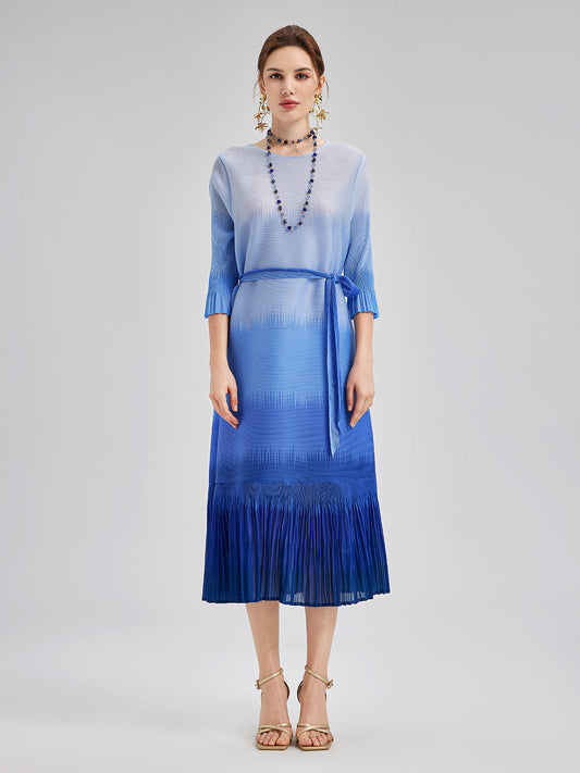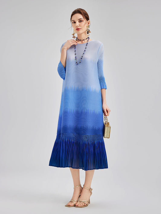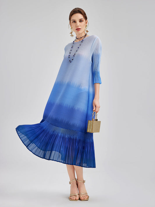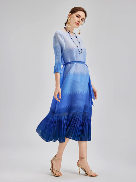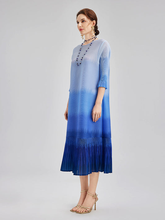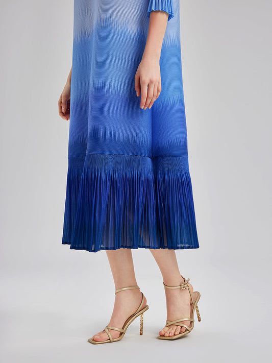Zarif Ombre Pileli Panel Elbise