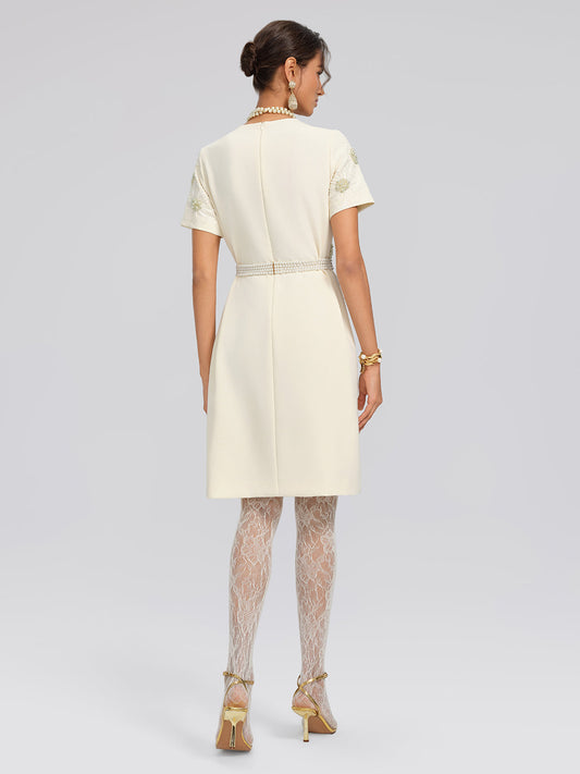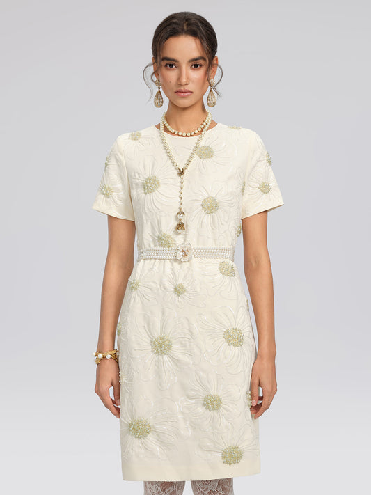 Çiçek Nakışlı El İşlemeli Elbise (Kemer Dahil Değildir)