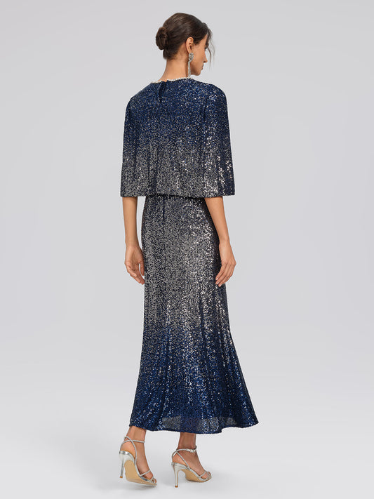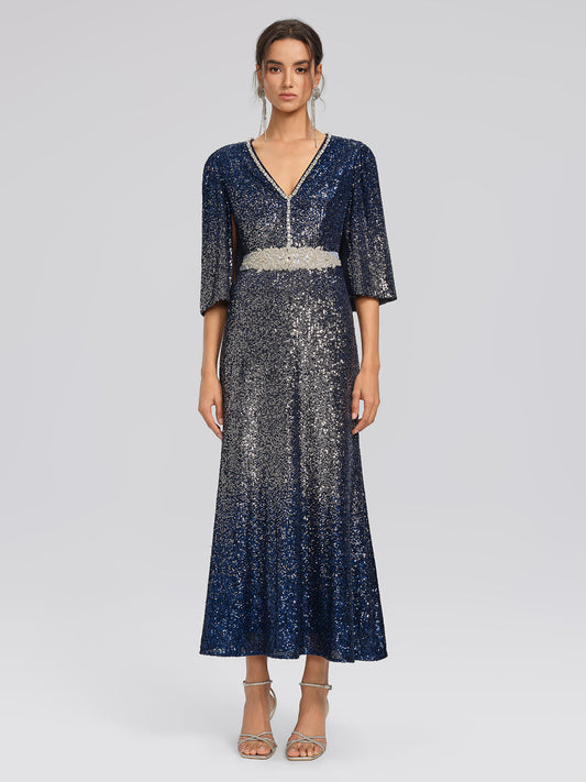 Gradyan Payetli Kap Kol Elbise (Kemer Dahil Değildir)