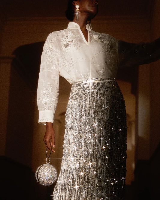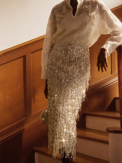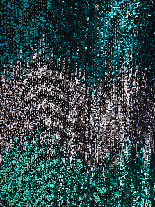 Gradyan Payetli V Yaka Streç Elbise
