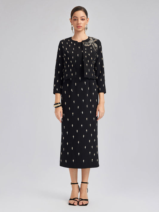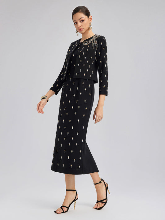 El İşlemeli Bisiklet Yaka Elbise