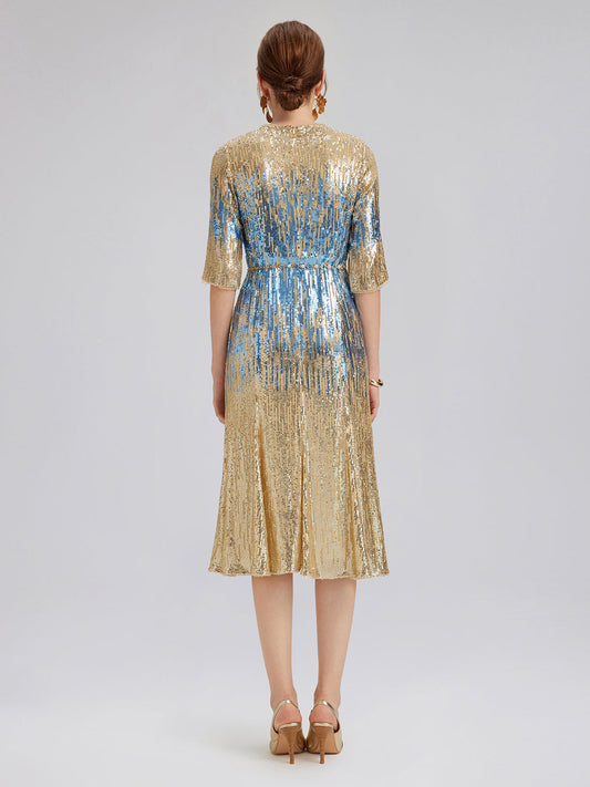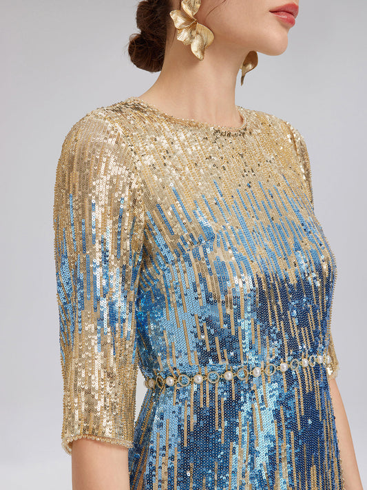 Yumuşak Ombre Streç Payetli Elbise